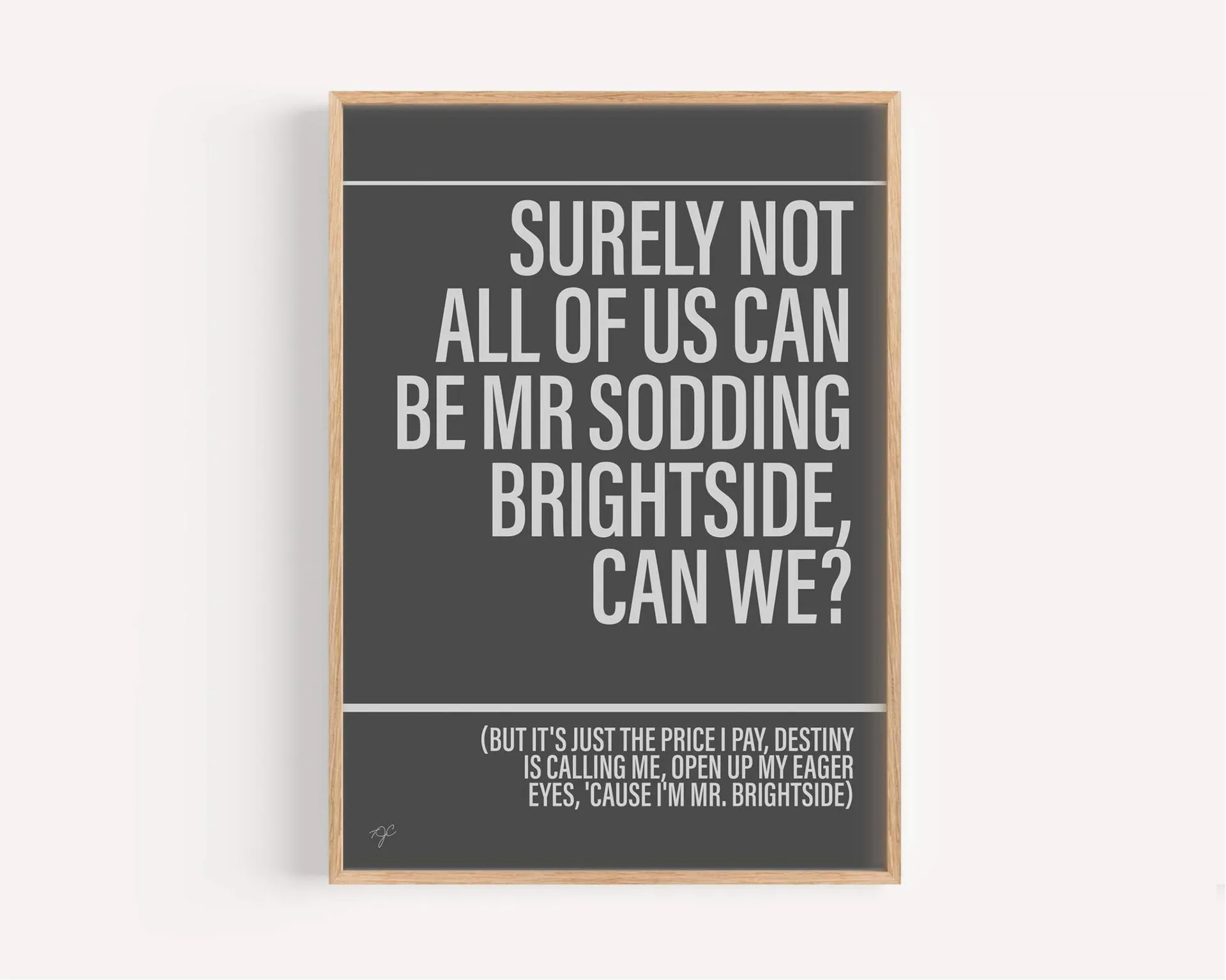 Mr Brightside A4 Print - Dark Grey - Oak Frame