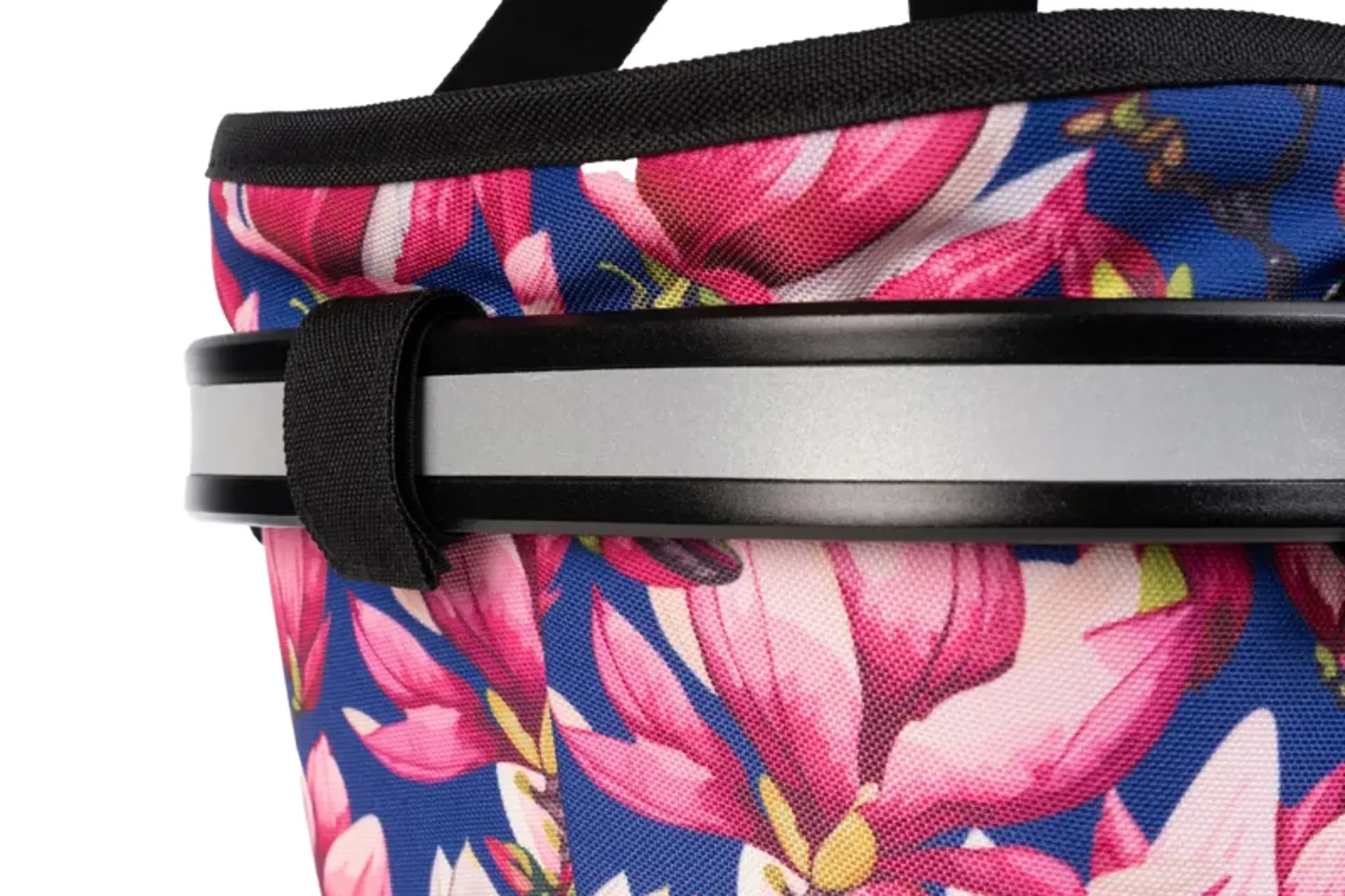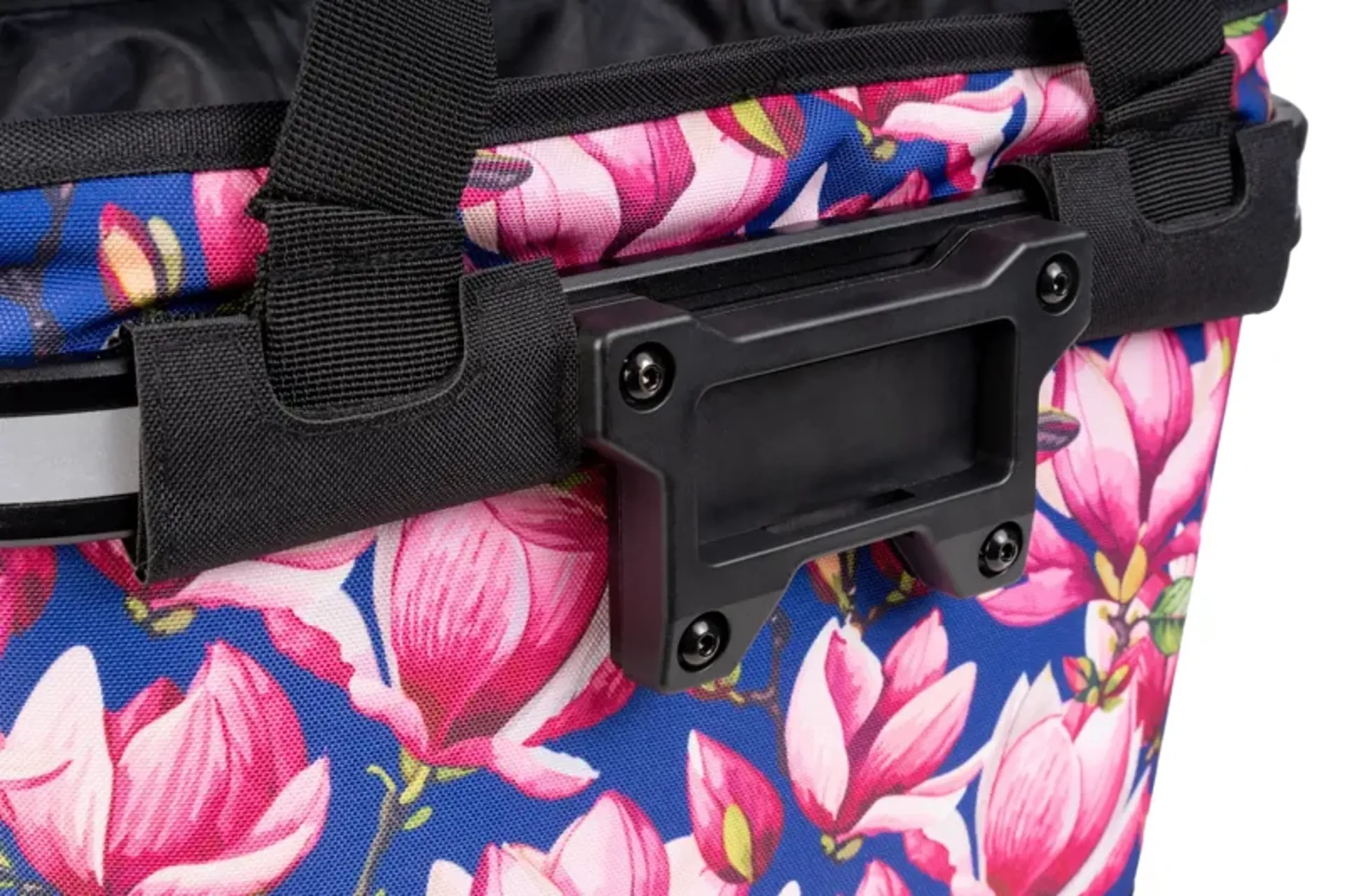 Flexibly mount compatible bags or baskets to the handlebar.