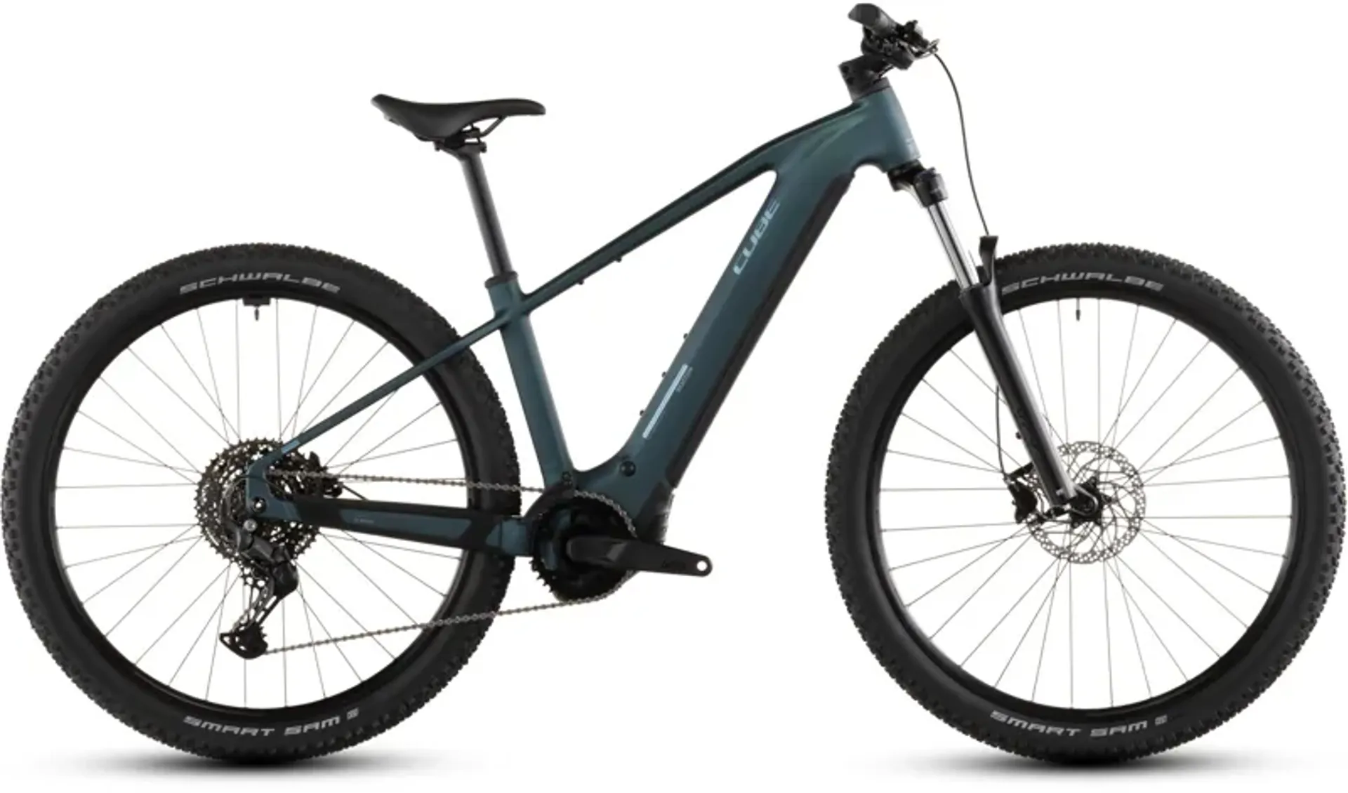 The Reaction Hybrid ONE combines CUBE's clever frame design and a 600Wh PowerTube battery with Bosch's renowned, Smart System-equipped CX motor and Shimano's reliable, easy-to-use Cues 1x10 gears for smooth, almost effortless pedal assistance. There's a suspension fork for improved comfort and control on-road or off, with 120mm of travel (100mm for small frame sizes and for all Easy Entry models). Strong all-weather Shimano hydraulic disc brakes, combined with wide and comfortable Schwalbe Smart Sam 6.6cm (2.6") tyres, ensure you can always slow and stop safely. Fun and adventure, in one neat package.