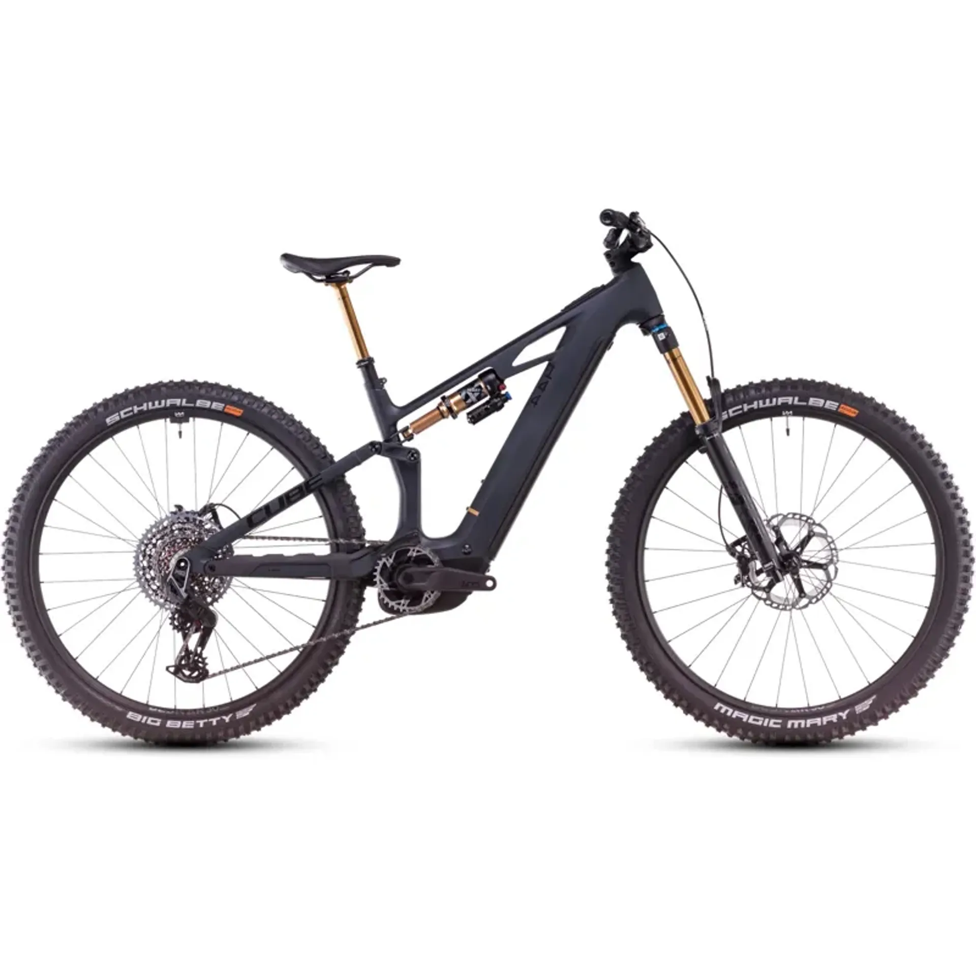 Cube Stereo Hybrid One44 HPC AT eMountain Bike in Carbon/Gold