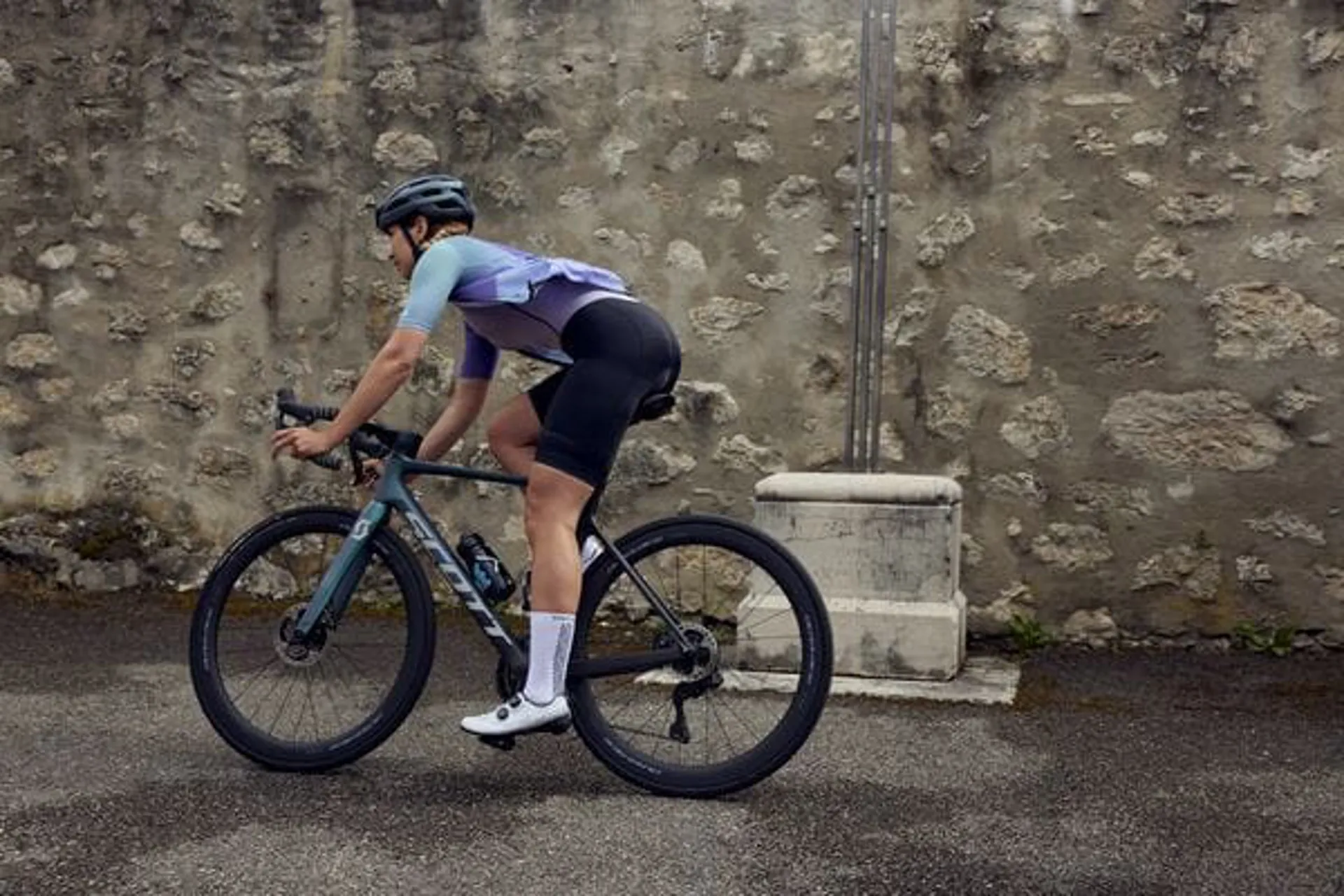 • Soft and elastic 85% recycled polyester provides extended riding comfort